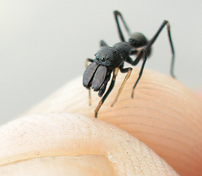 今日は、作業中、アリンコが足下から首筋まで上ってきたりしまして、そのうち、うなじのあたりの微妙なスポットを侵し始めたので捕まえてみるとニセ者でした、蜘蛛でした。【画像クリックで拡大】